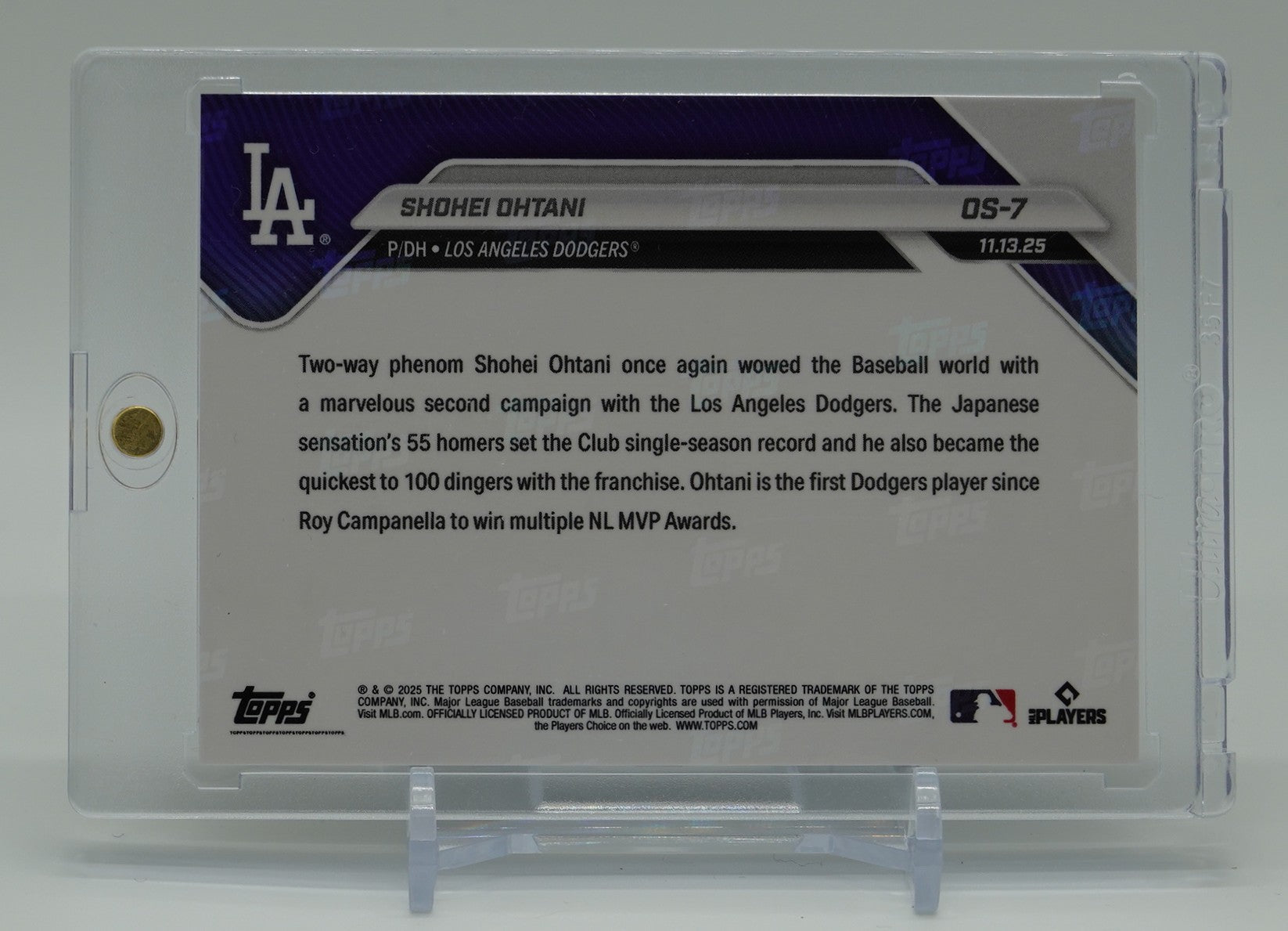 大谷翔平選手が2025年ナショナル・リーグMVPを受賞した記念の「Topps NOW」カードです。(Print Run:80,644枚) / 2025 MLB Topps NOW Card #OS-7 - PR: 80,644
