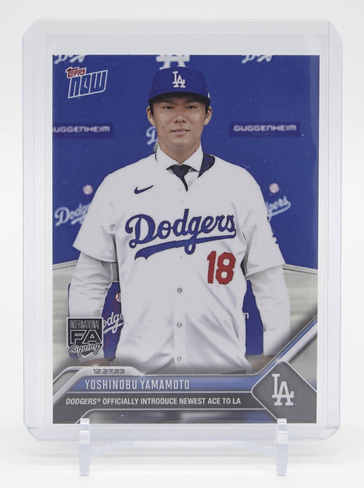 「2023 Topps Now」より発売された、山本由伸選手の入団会見ファーストカードです。「メジャーリーガ・山本由伸」の最初のカードです。